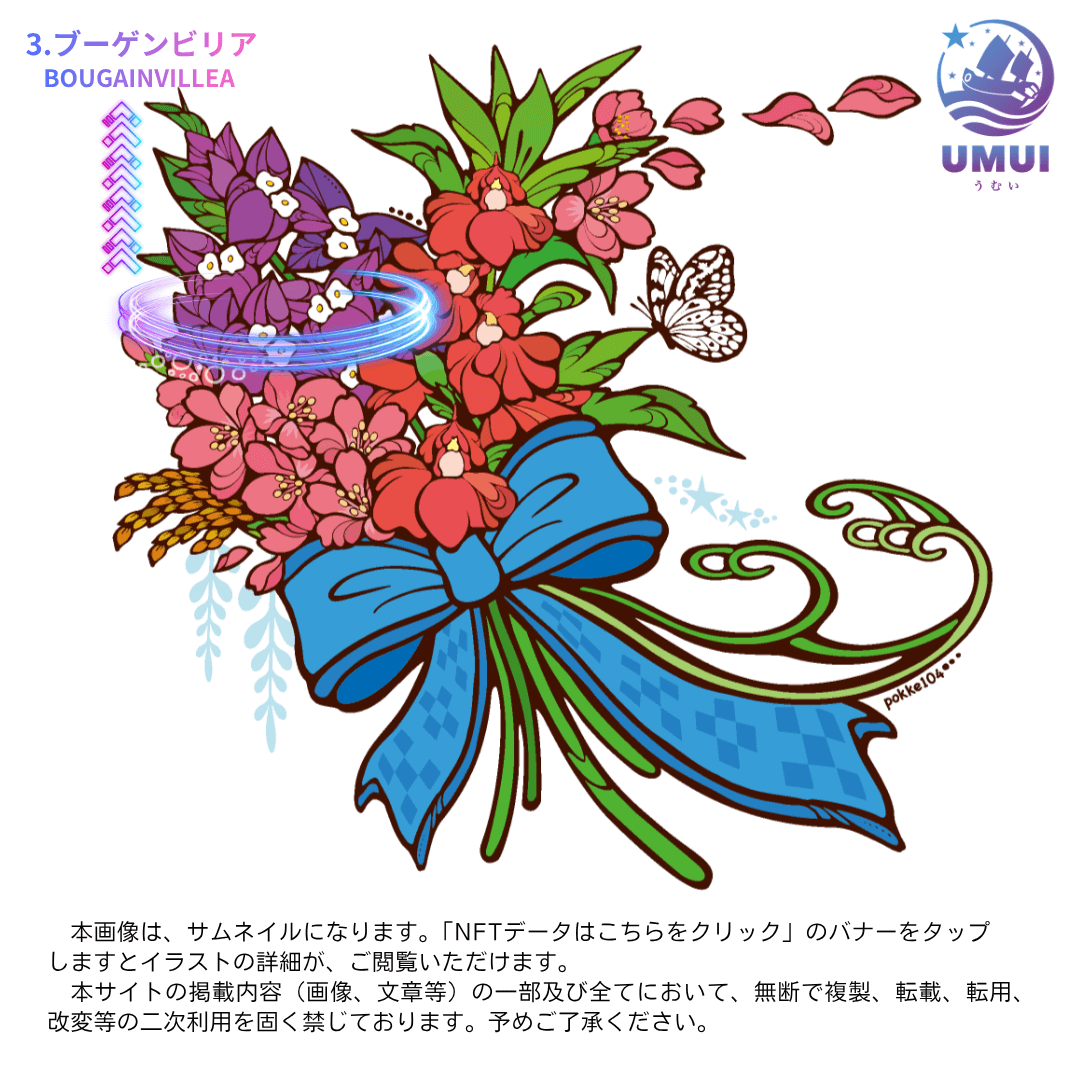 UMUI-04【ブーゲンビリア_Bougainvillea】 NFTデータはこちらをクリック!Click here to view the NFT Data!★メッセージやデータの詳細をご覧いただけます。You can view more details about the message and data.