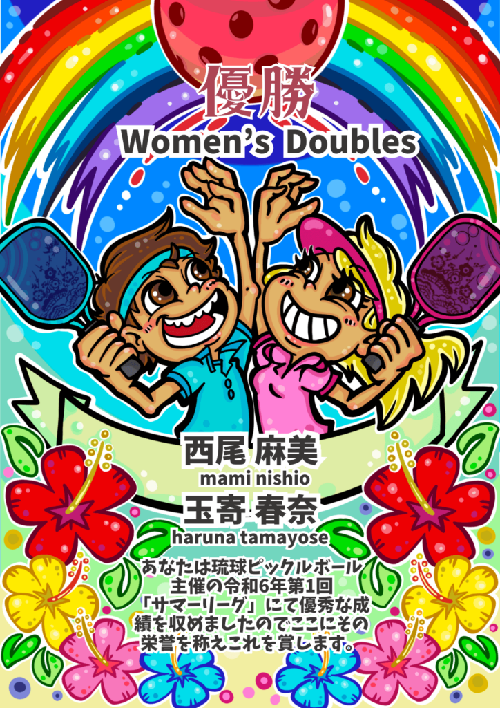 【第1回サマーリーグ賞状NFT 】女子ダブルス優勝:西尾麻美 殿&玉寄春奈 殿