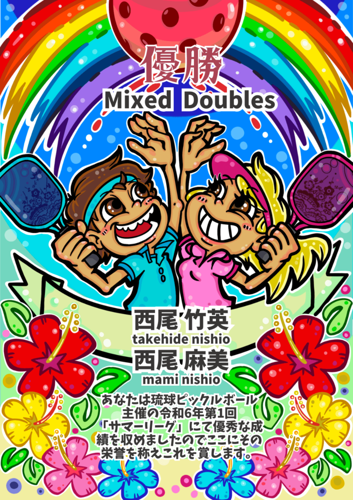 【第1回サマーリーグ賞状NFT 】混合ダブルス優勝:西尾竹英 殿&西尾麻美 殿