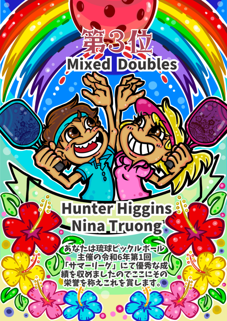 【第1回サマーリーグ賞状NFT 】Mix Doubles 第3位:Hunter Higgins 殿& Nina Truong 殿