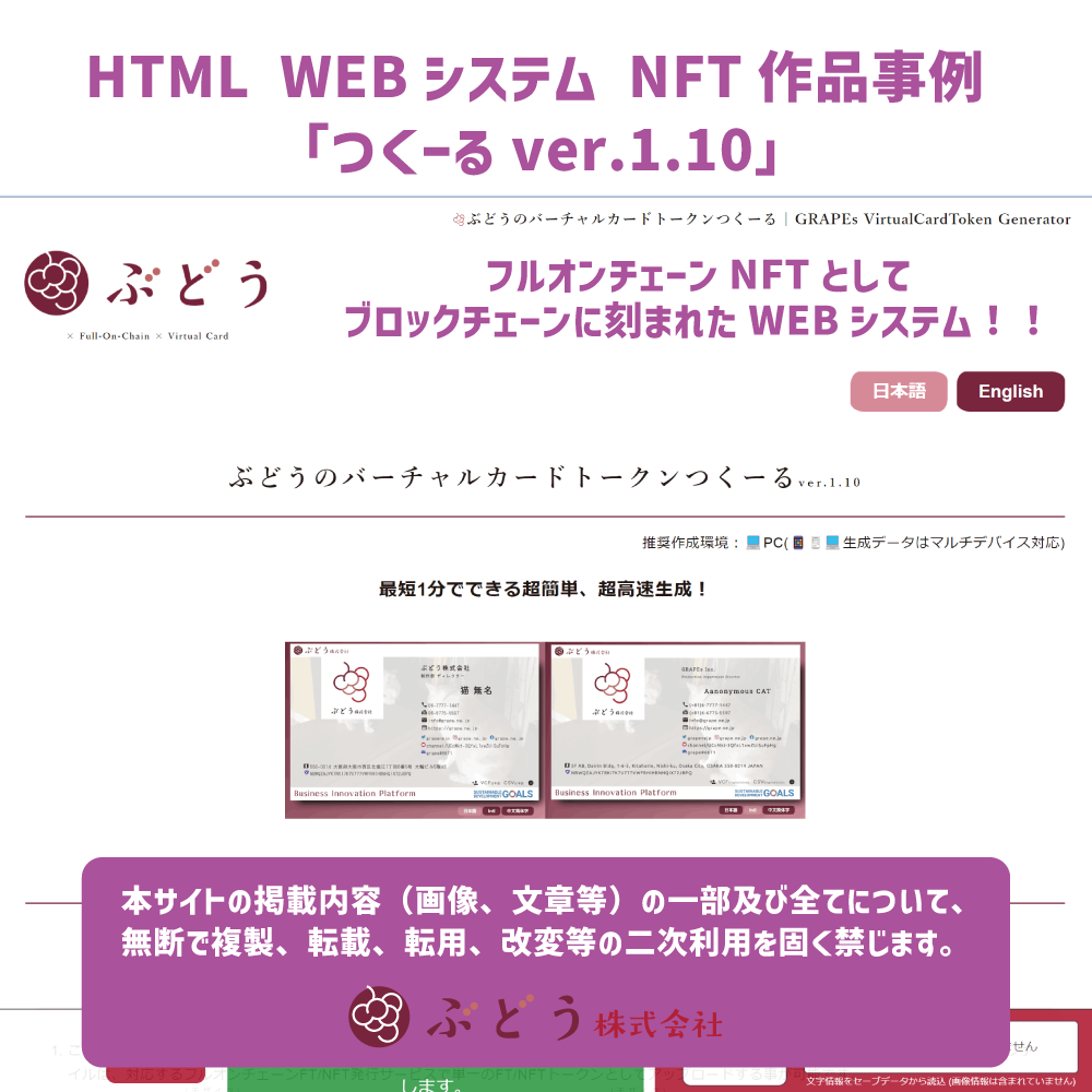 NFT活用事例③【HTML WEBシステム「つくーるver.1.10」】