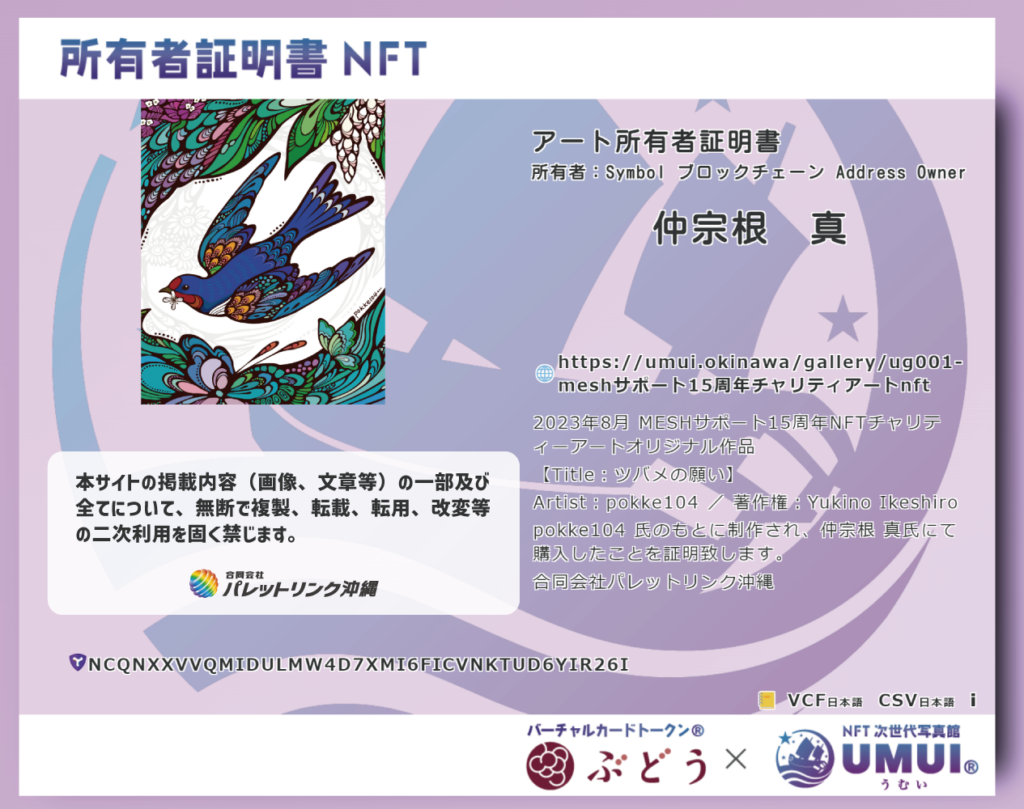 【アート所有者証明書NFT】各種証明書NFT制作実績_制作依頼承っております!