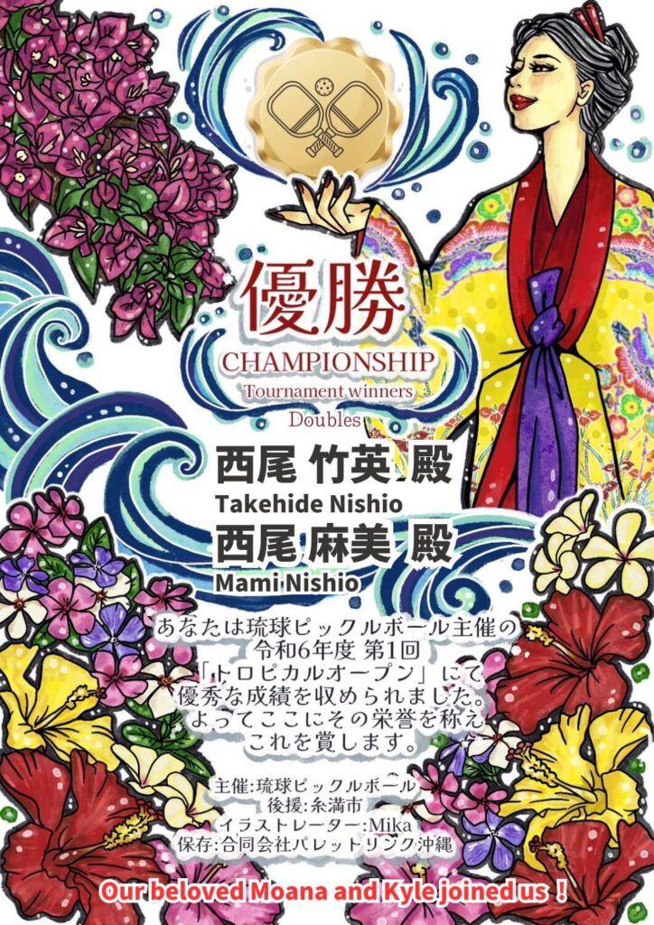 RPB002 2024.03.31 第1回トロピカルオープン賞状NFT【優勝者:西尾 竹英 殿&西尾 麻美 殿】