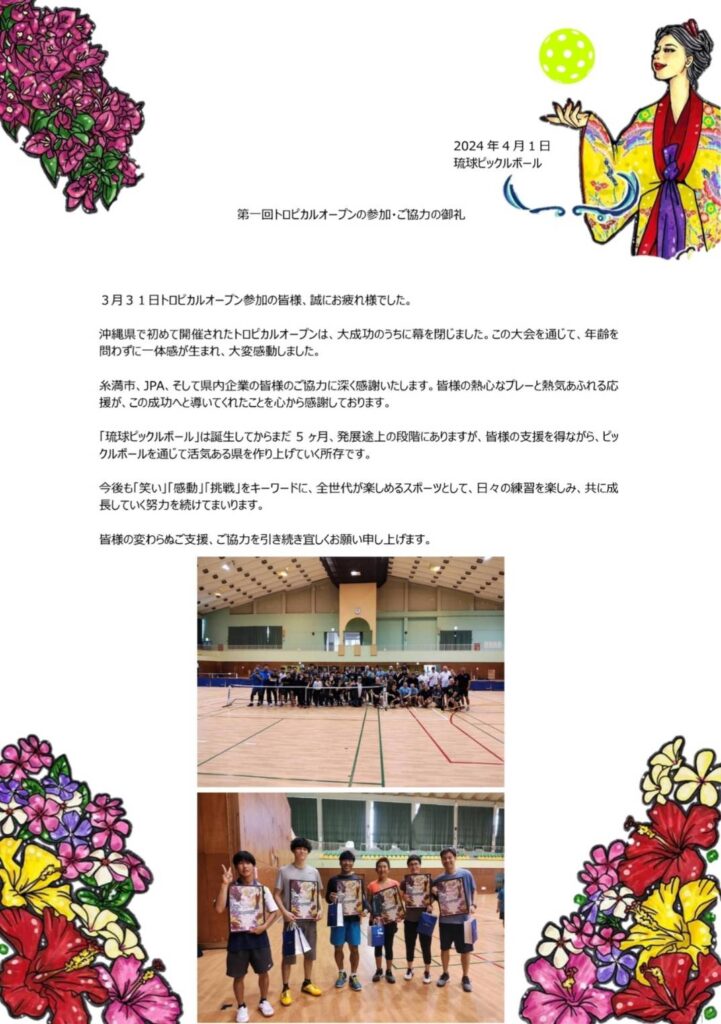 RPB007 2024.04.01 第1回トロピカルオープンの参加・ご協力の御礼【御礼状】