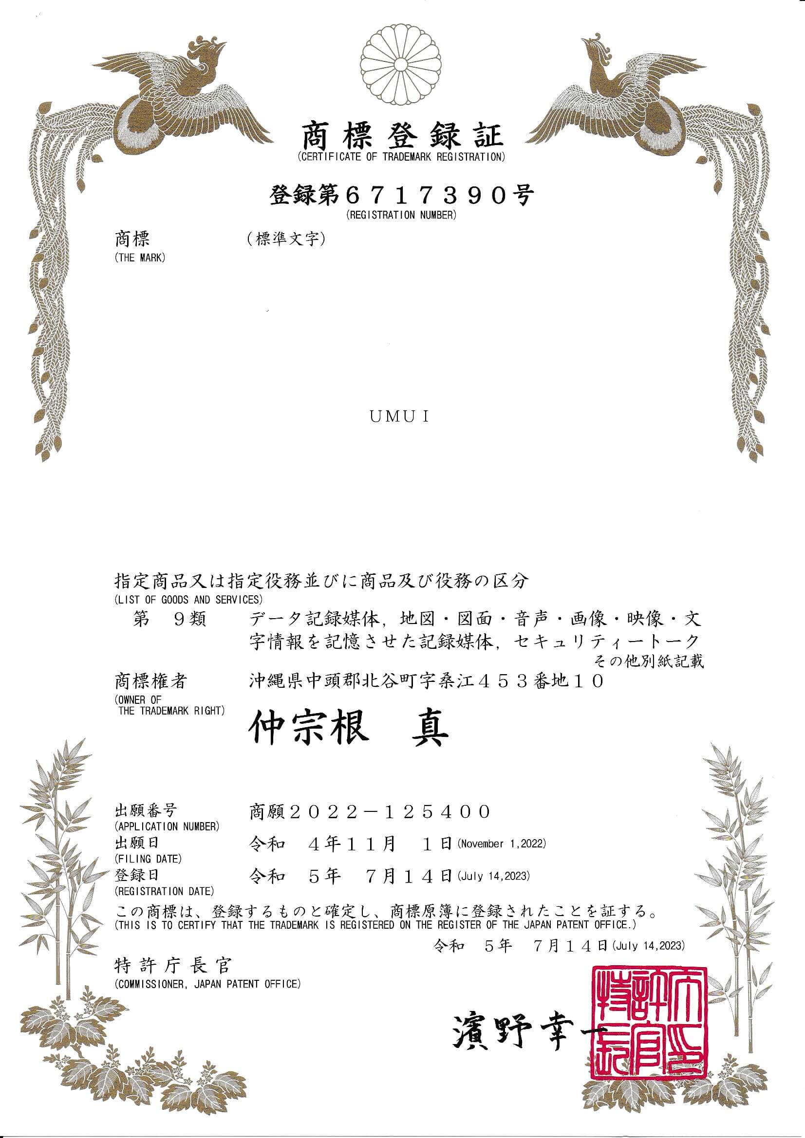 PDFデータsample_UMUI商標登録証 NFTデータはこちらをクリック!Click here to view the NFT Data!★メッセージやデータの詳細をご覧いただけます。You can view more details about the message and data.
