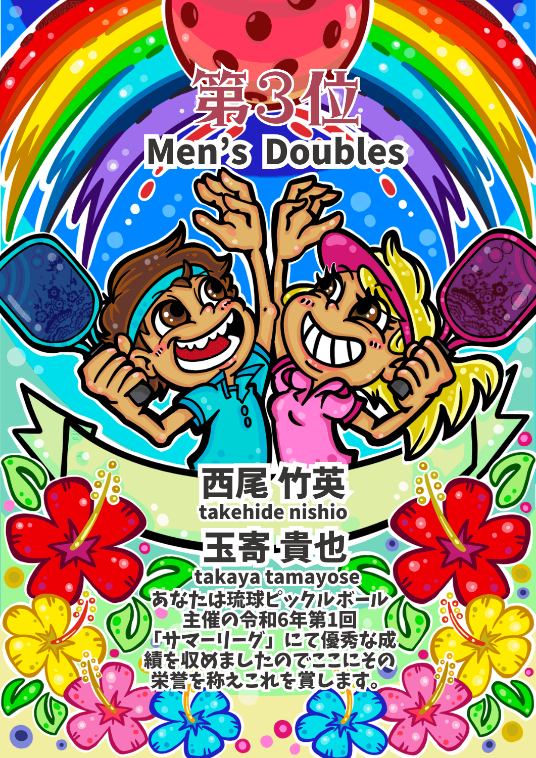 【第1回サマーリーグ賞状NFT 】男子ダブルス第3位:西尾竹英 殿&玉寄貴也 殿 NFTデータはこちらをクリック!Click here to view the NFT Data!★メッセージやデータの詳細をご覧いただけます。You can view more details about the message and data.