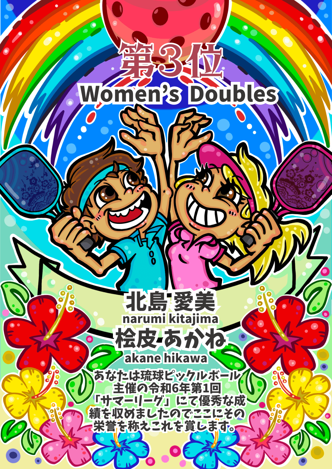 【第1回サマーリーグ賞状NFT 】女子ダブルス第3位:北島愛美 殿& 桧皮あかね 殿