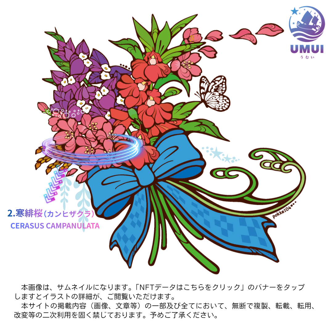 UMUI-03【寒緋桜(カンヒザクラ)Cerasus campanulata】 NFTデータはこちらをクリック!Click here to view the NFT Data!★メッセージやデータの詳細をご覧いただけます。You can view more details about the message and data.